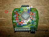 こりゃ良いやと思ったら、ちょっとマズイ... 方向キーのパターンがICの下に隠れている為 にランドからの取り出し口が解らないッス。